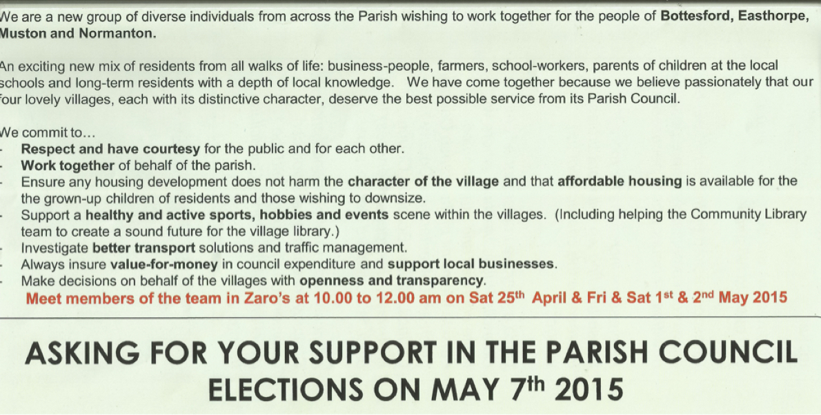 Perhaps the Bottesford Parish Councillors don't want to be reminded of their combined election manifesto...